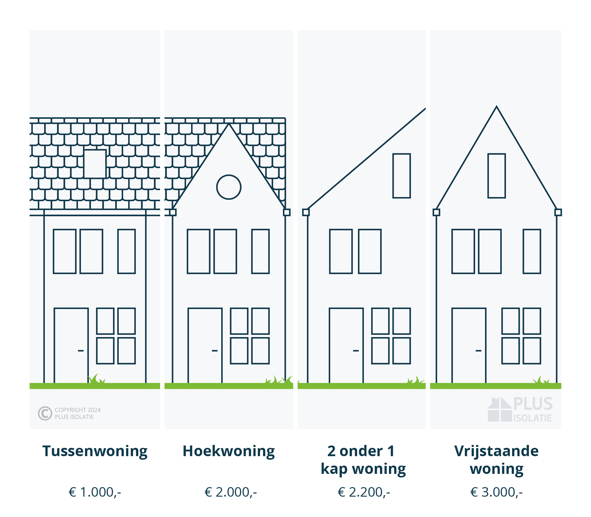 The cost of cavity wall insulation varies per dwelling. This has to do with, among other things, the cavity wall area, the cavity wall width, the accessibility of the house, the insulation material and other costs (think of ventilation grids, cavity pollution removal or cut joint repair). The table below gives an indication of the average cost of cavity wall insulation: