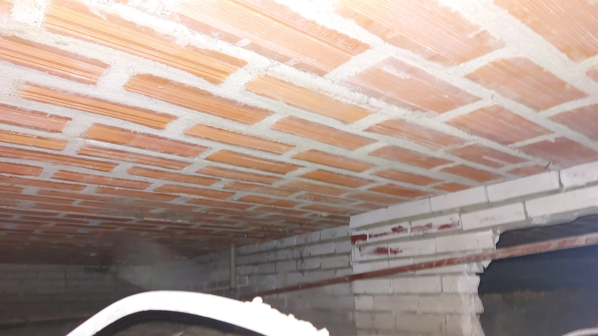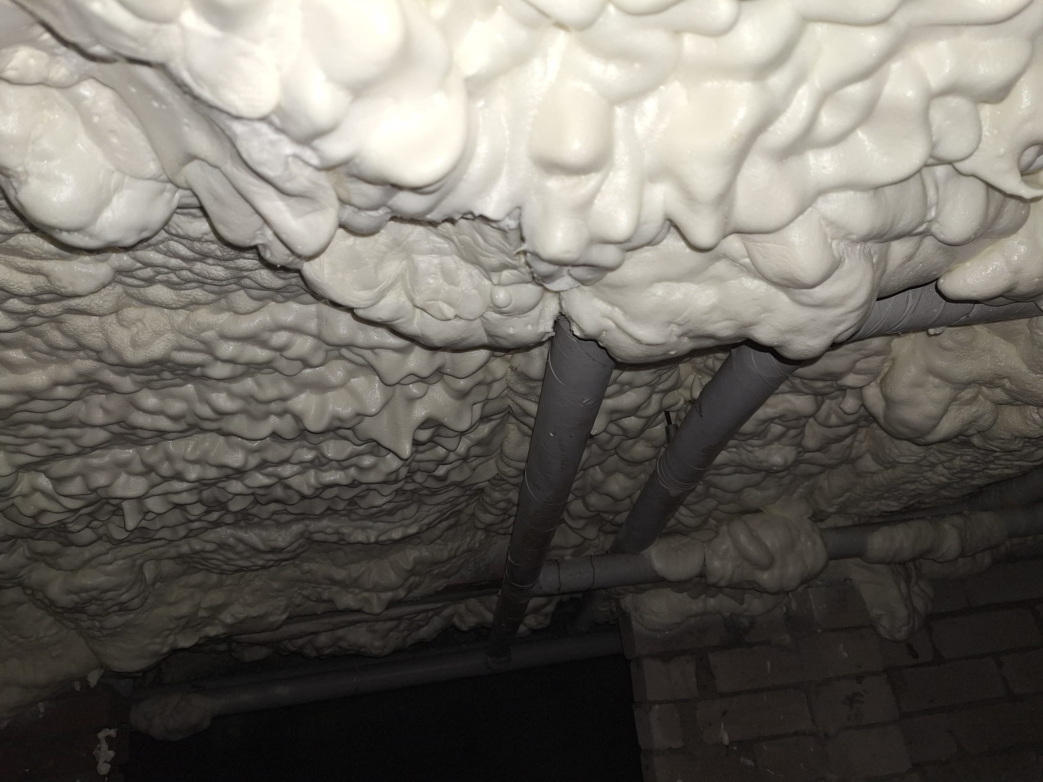 Hieronder ziet u een voorbeeld van een Nehobo vloer vóór en na isolatie. Deze vloer is geïsoleerd met Icynene open-cel PUR-schuim met een laagdikte van 14 cm.