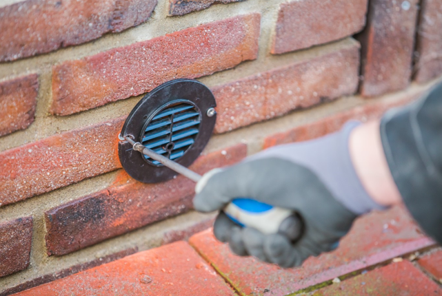 Je kunt een geïsoleerde spouwmuur vaak herkennen aan twee visuele punten; namelijk: ventilatieroosters en een dicht gevoegd boorpatroon op de buitengevel.