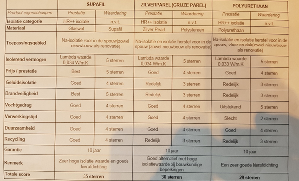 Prijs-kwaliteitverhouding van isolatiematerialen