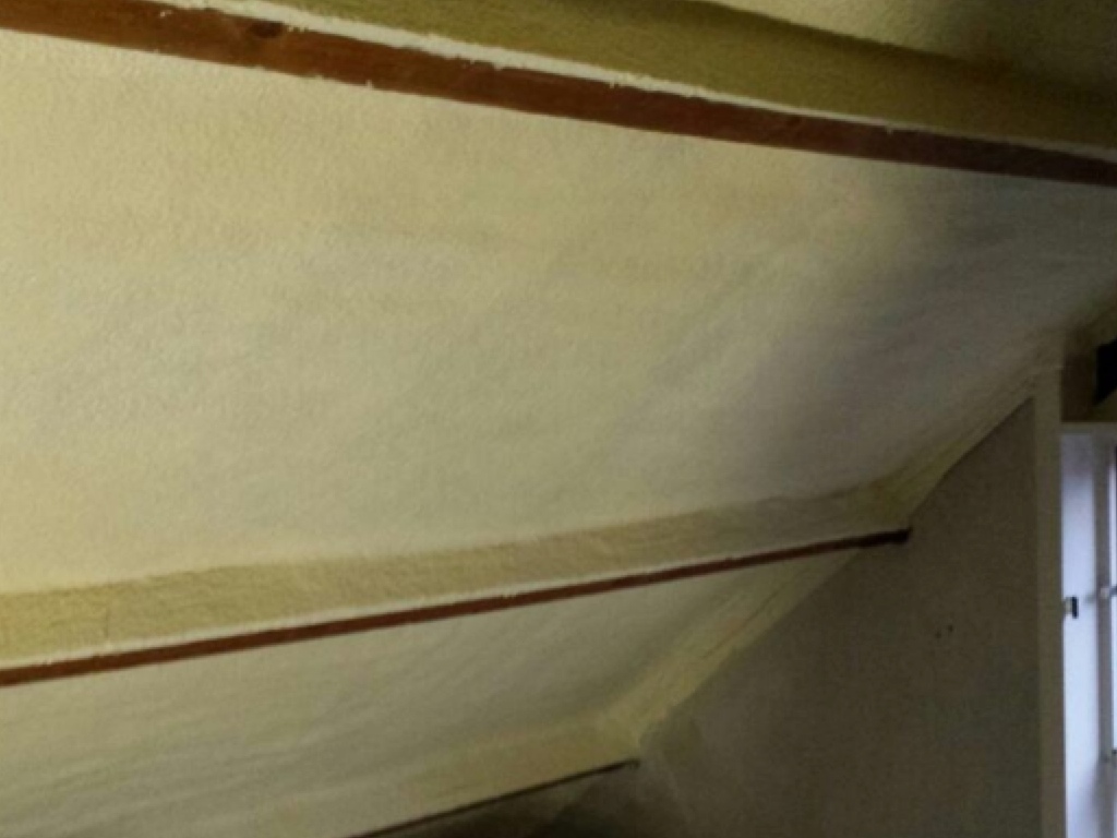 Daarna wordt de hoogwaardige pur tegen het dakbeschot gesprayd.