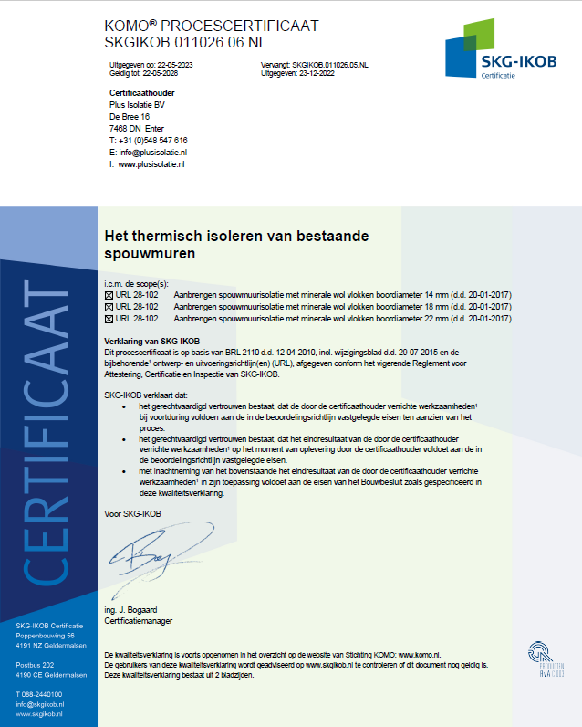Plus isolatie B.V. is erkend verwerker van spouwmuurisolatie door middel van Knauf Supafil en beschikt over het KOMO-procescertificaat voor het aanbrengen hiervan. Door onze medewerkers op te leiden, weten we precies hoe en wanneer we Knauf als beste oplossing kunnen gebruiken. Plus Isolatie is daarom STS 71-1 gecertificeerd.